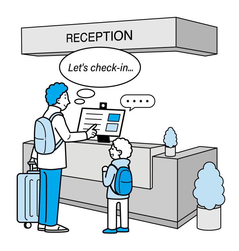 無人のフロントデスクでも、お客様をお待たせすることなく、スムーズにチェックインを完了させる事ができます。